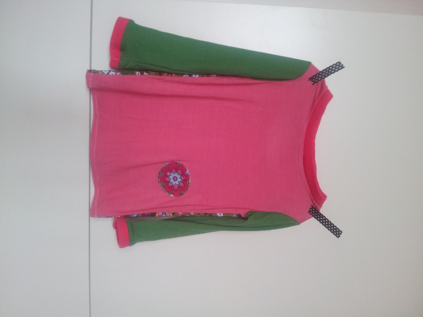 Con las mangas y la parte de abajo se ve la "novatada" pues debería haber previsto que al ser muy elástica la ropa de puño debía cortar más pequeña que el patrón .... así le da un aire de los años 80 o estilo disfraz de marcianos;-P (gracias a Pantigana me ha aclarado el problema, que usé una parte del patron que no tocaba...)